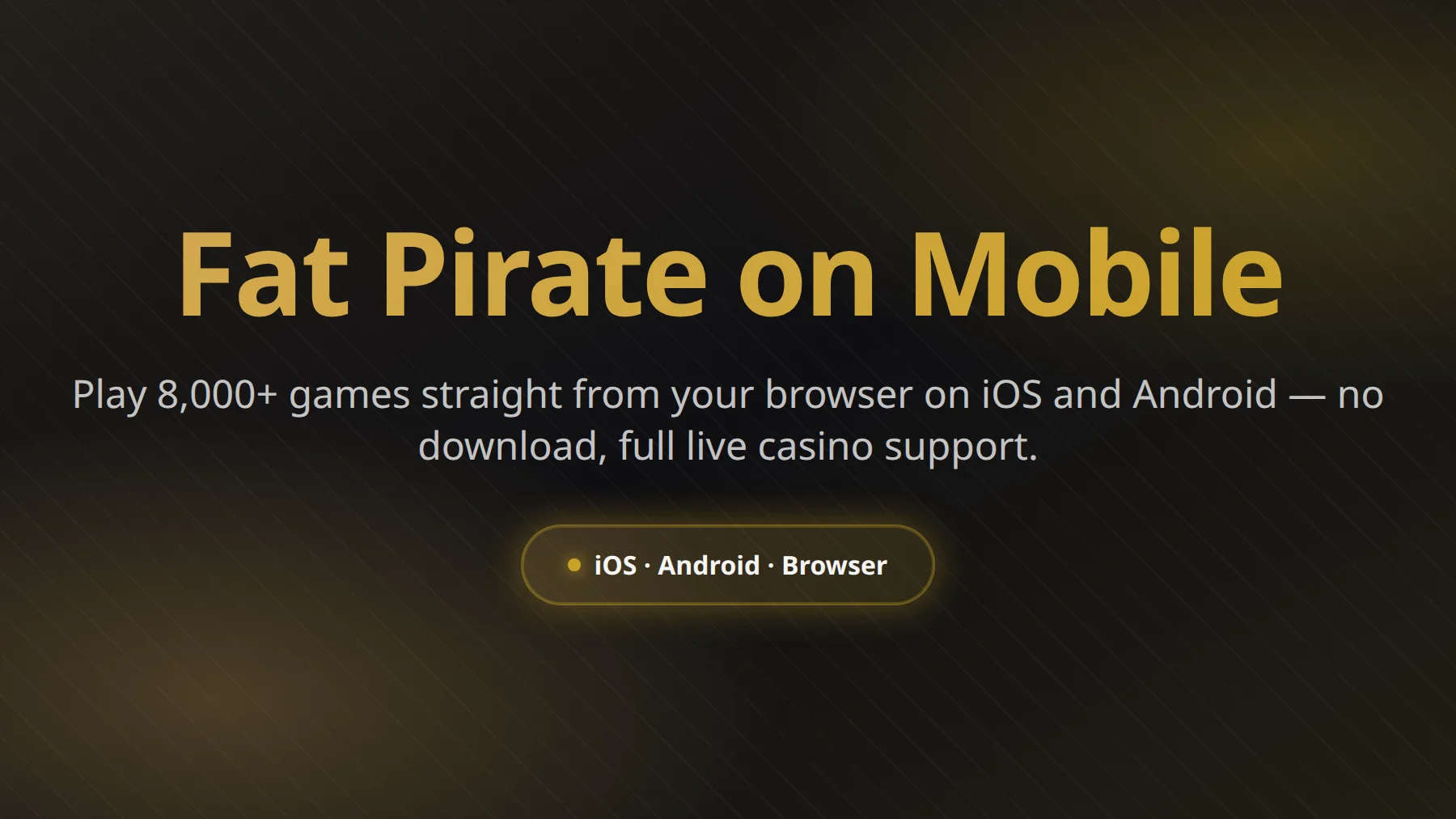 Fat Pirate runs as a responsive HTML5 web app — no native download required. Play 8,000+ slots, live dealer and table games straight from your mobile browser, or pin the shortcut to your home screen for one-tap access on iOS and Android.